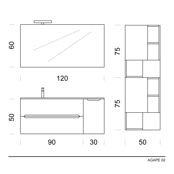 Elevate your bathroom with the graceful and modern BelBagno Agape 02‑2, a suspended vanity that blends sinuous curved design with practical storage and premium materials. Part of the Agape collection, this composition adds a sculptural, organic feel to your interior.