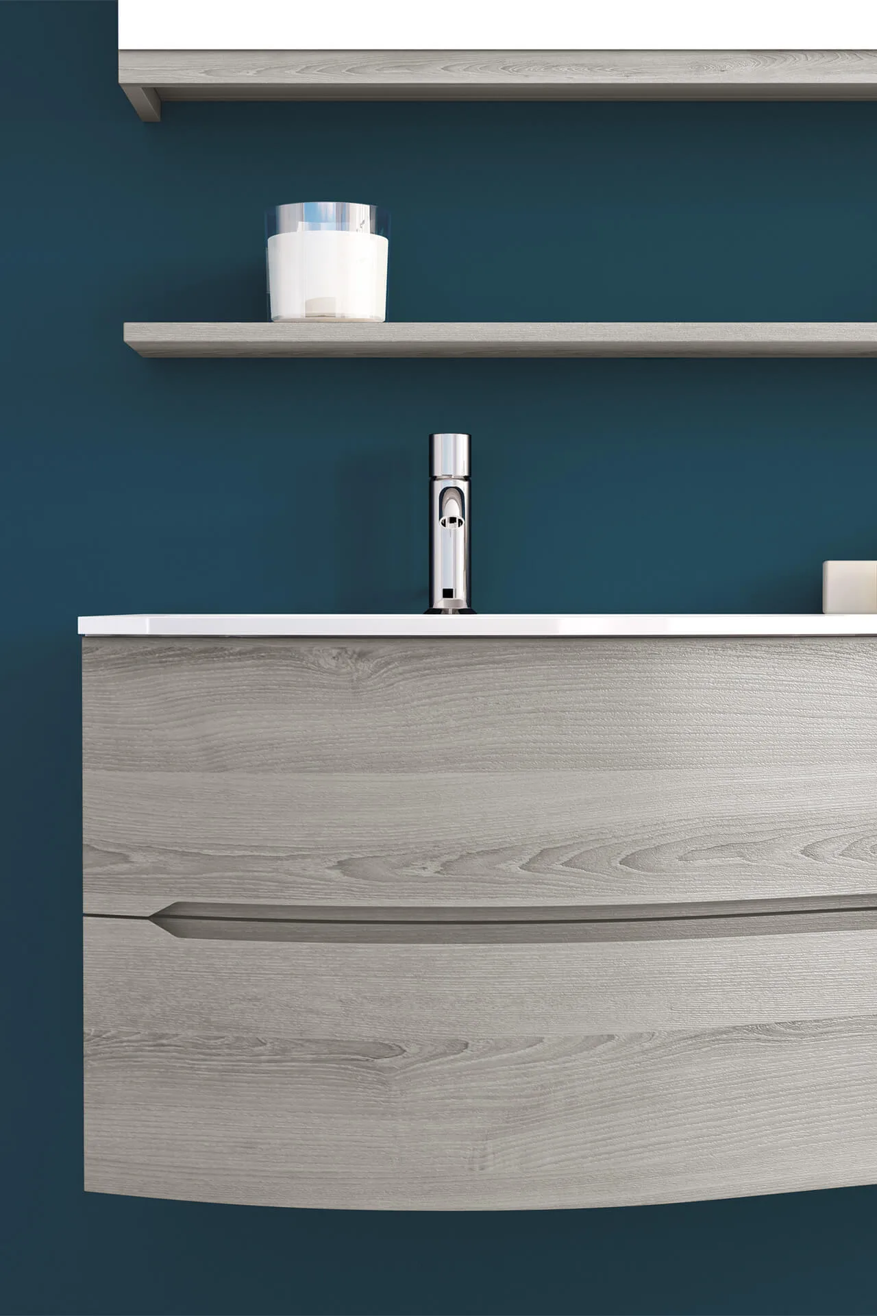 Curved Base Design: The vanity features softly curved fronts, creating a fluid, sculptural silhouette that enhances any bathroom space.