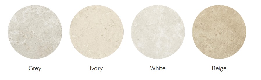 Soft, natural colors that complement any design: Grey, Ivory, White, and Beige.