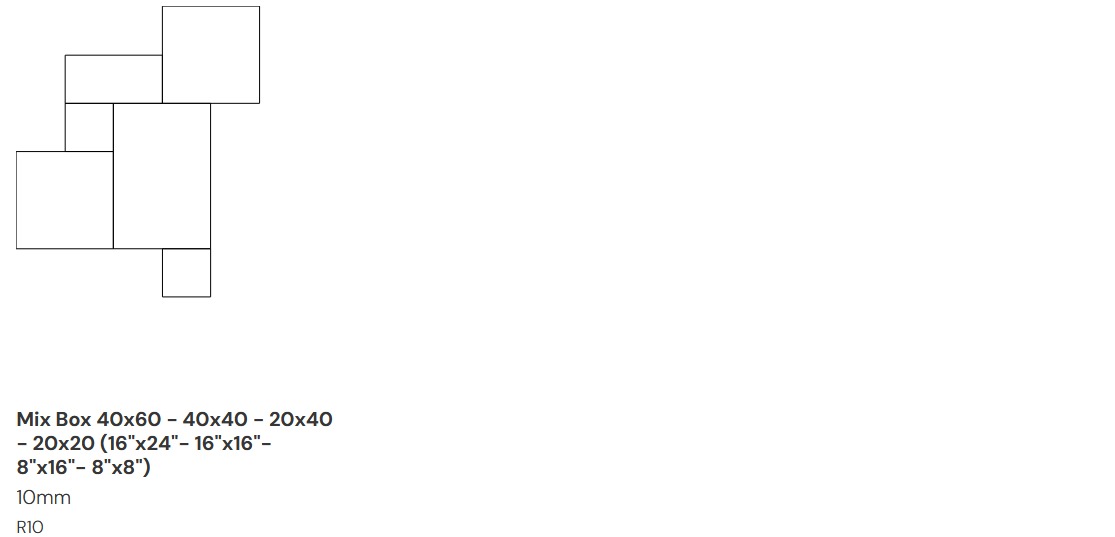 Mix Box – a curated set combining 40×60, 40×40, 20×40, and 20×20 tiles.
