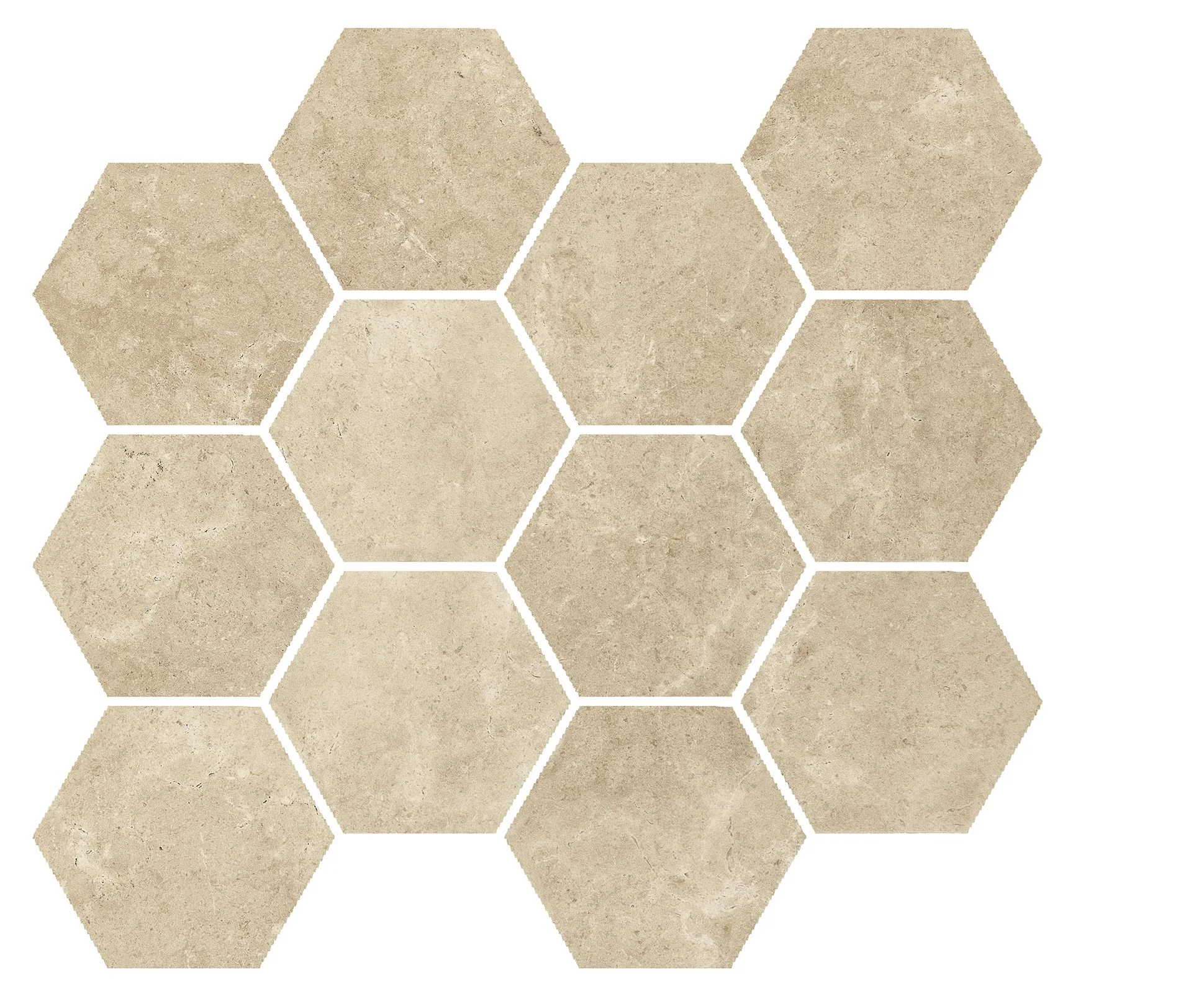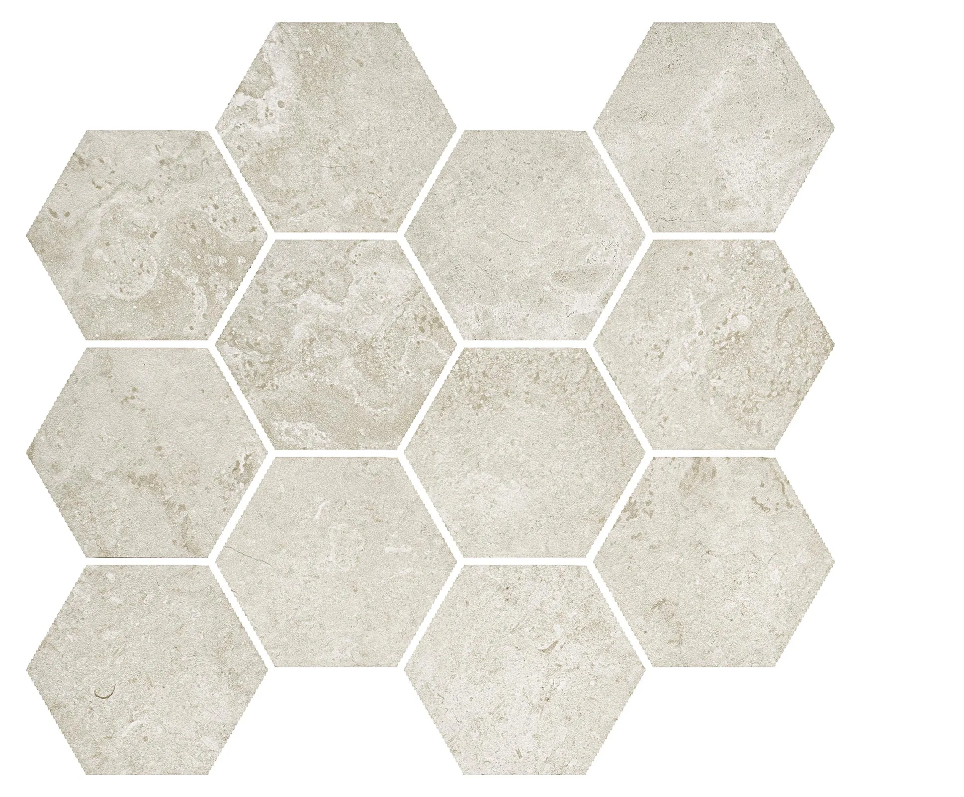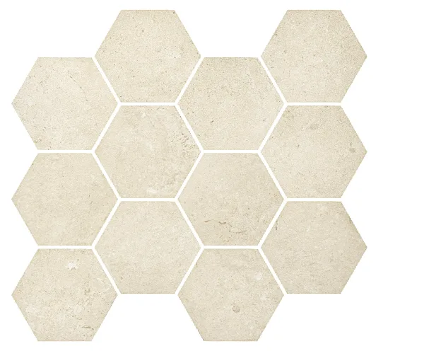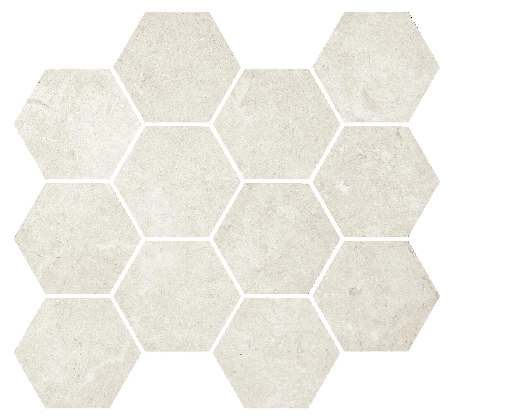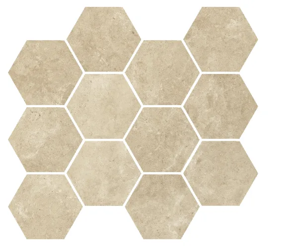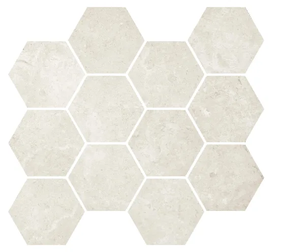 Hexagon 34.7×30 cm tiles for a modern geometric look.