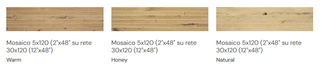 | Decors | Mosaico 5×120 (2"x48" su rete 30×120 (12"x48") |