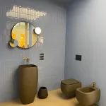 Seamless Symmetry: The matching wall-hung toilet and bidet feature a consistent, rounded silhouette, creating a unified and balanced aesthetic.