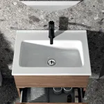 • Integrated Mineral‑Marble Basin: Comes with a glossy white mineral‑marmo (mineral‑marble) washbasin top, complete with mixer tap hole and overflow.