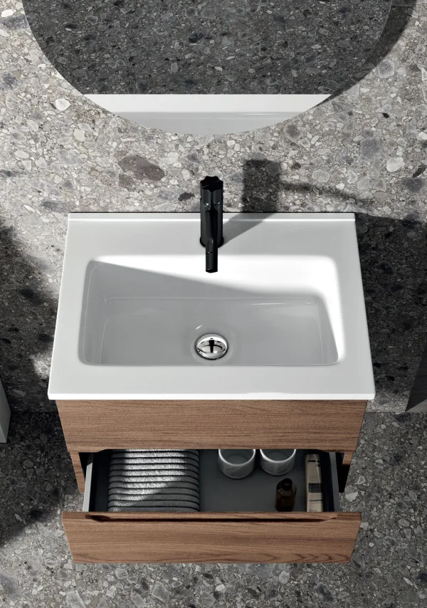 Bring together minimalist design and space efficiency with the BelBagno Easy Afrodite 01. This wall-hung vanity unit is part of BelBagno’s refined Easy Afrodite range, designed to be modern, functional, and beautifully crafted.