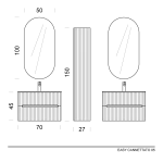 Optional Tall Unit: A reversible ribbed column cabinet (27 × 150 × 20 cm) is part of the composition, offering additional storage.
