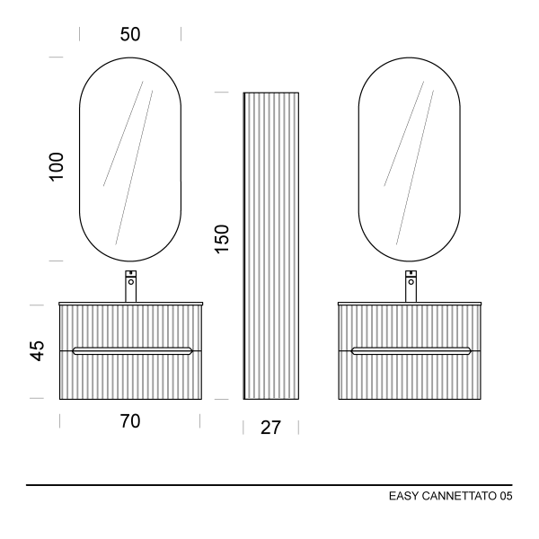 Elevate your bathroom with the BelBagno Easy Cannettato 05, a refined and modern wall-hung vanity composition that combines tactile texture with practical function. With its ribbed (cannettato) design and carefully curated components, this unit brings both elegance and utility into your space.