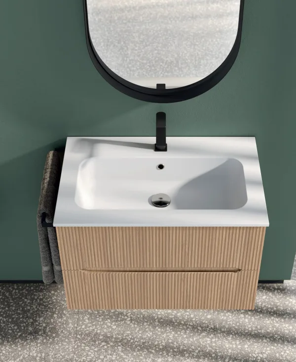 Ribbed (Cannettato) Finish: The vanity’s ribbed surface features vertical grooves that create a natural, warm aesthetic — a signature of the Easy Cannettato collection.