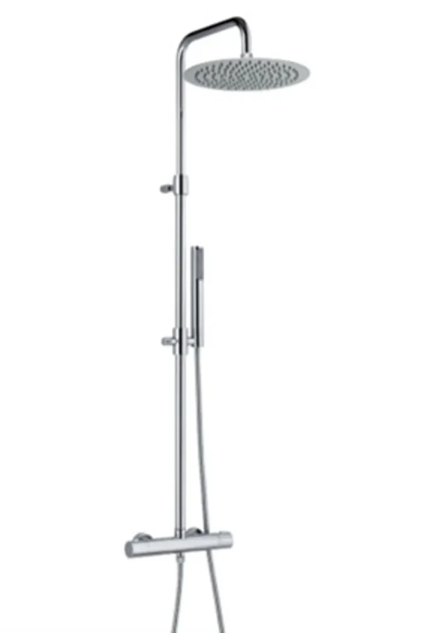 Thermostatic shower mixer with column, shower head and monospray handshower.
