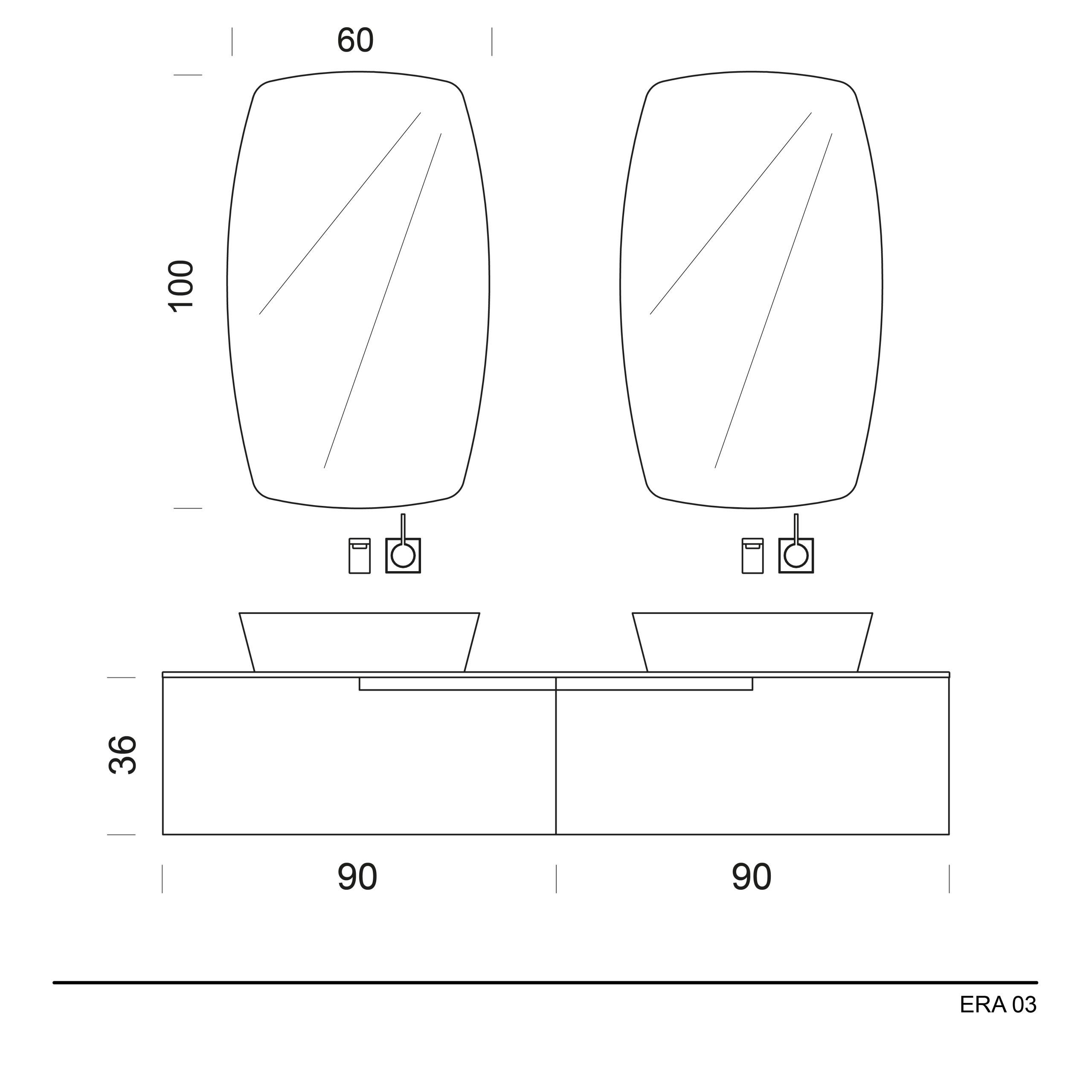 • Illuminated Mirrors: Includes two retro‑illuminated “Botte” mirrors (L 60 cm × H 100 cm × D 2.5 cm), enhancing the vanity’s visual appeal while improving functionality.