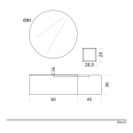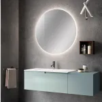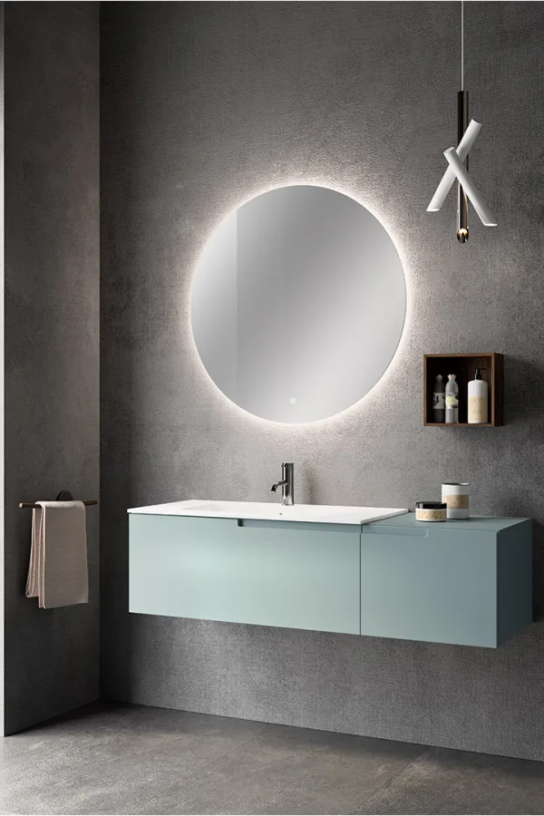 Illuminated Mirror: Features a round, rear-lit Arco mirror (Ø 90 cm) with touch control for modern convenience and soft ambient lighting.