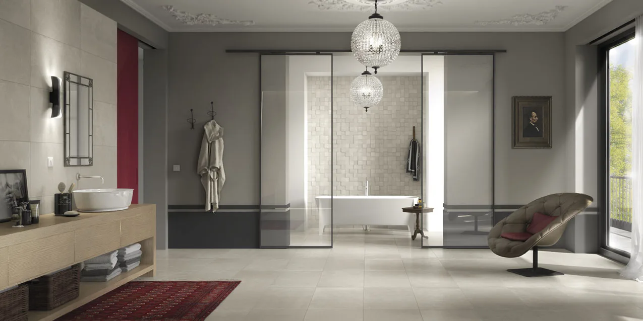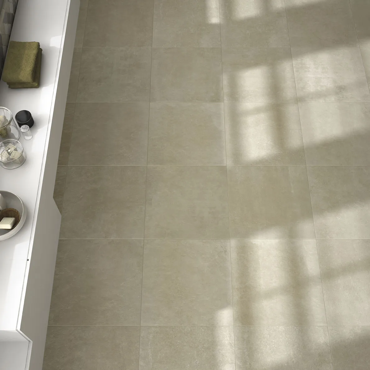 With Fusion, your bathroom can take on a contemporary, industrial‑chic vibe. If you choose Antracite in large format, you’ll get a bold floor statement. Or pick Bianco or Beige in a slab size and let the tile create a sleek, minimalist canvas for fixtures and furniture.