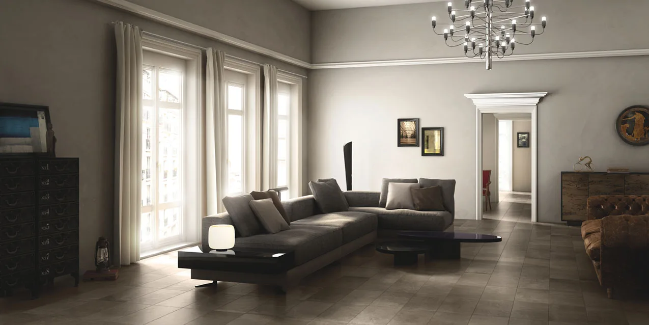 The rectified edges and matt finish ensure the overall effect is clean and refined — not overly rugged.