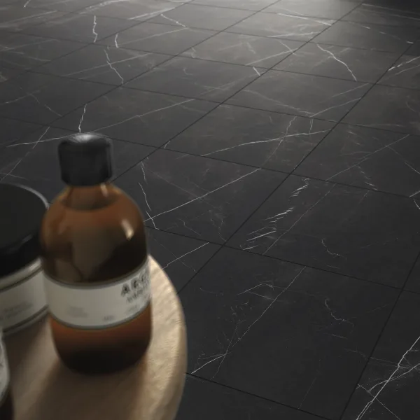 Transform your bathroom into a bold, luxurious space with the Marquinia Black collection — deep black porcelain tiles with striking white marble‑style veining, designed to bring dramatic elegance and premium performance.