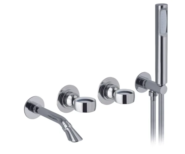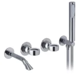 Concealed bath mixer with spout, diverter, flex. hose and monospray handshower.