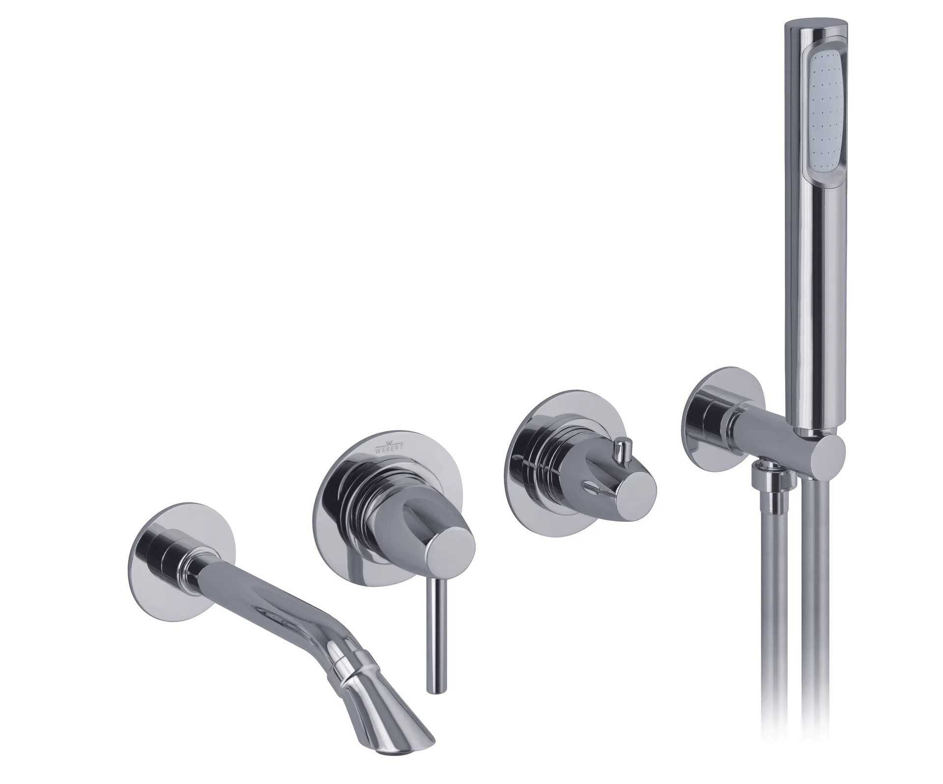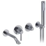 Concealed bath mixer with spout, diverter, flex. hose and monospray handshower.