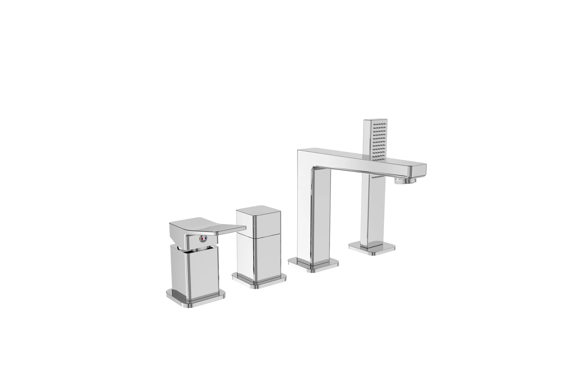 4-holes deck mounted bath mixer complete of hose 150 cm and handshower.