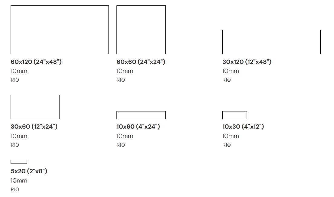 Large: 60 × 120 cm Matt, R10 rated.