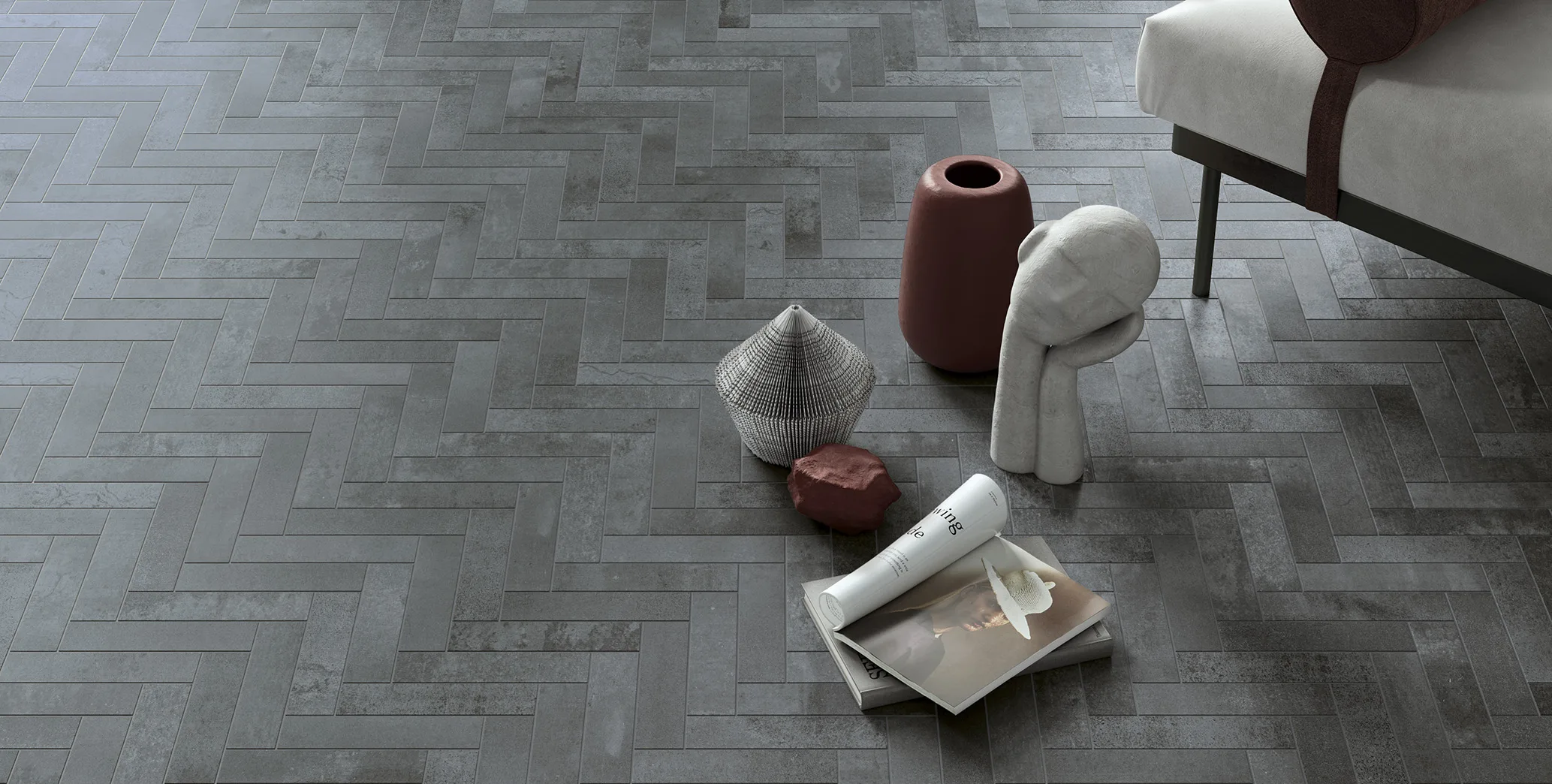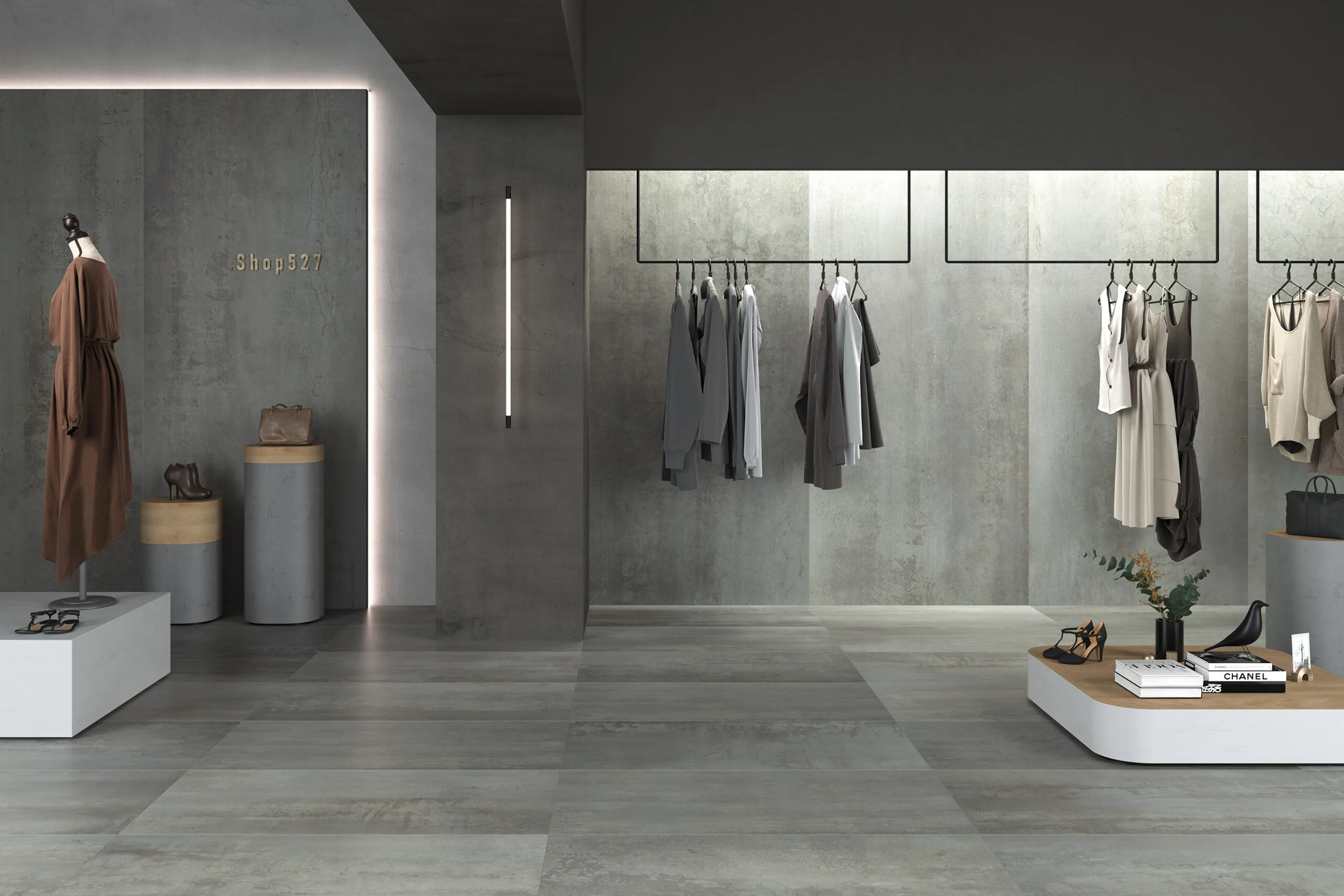 Powder – Light silver-grey, taupe/-beige mix for a soft industrial feel.
