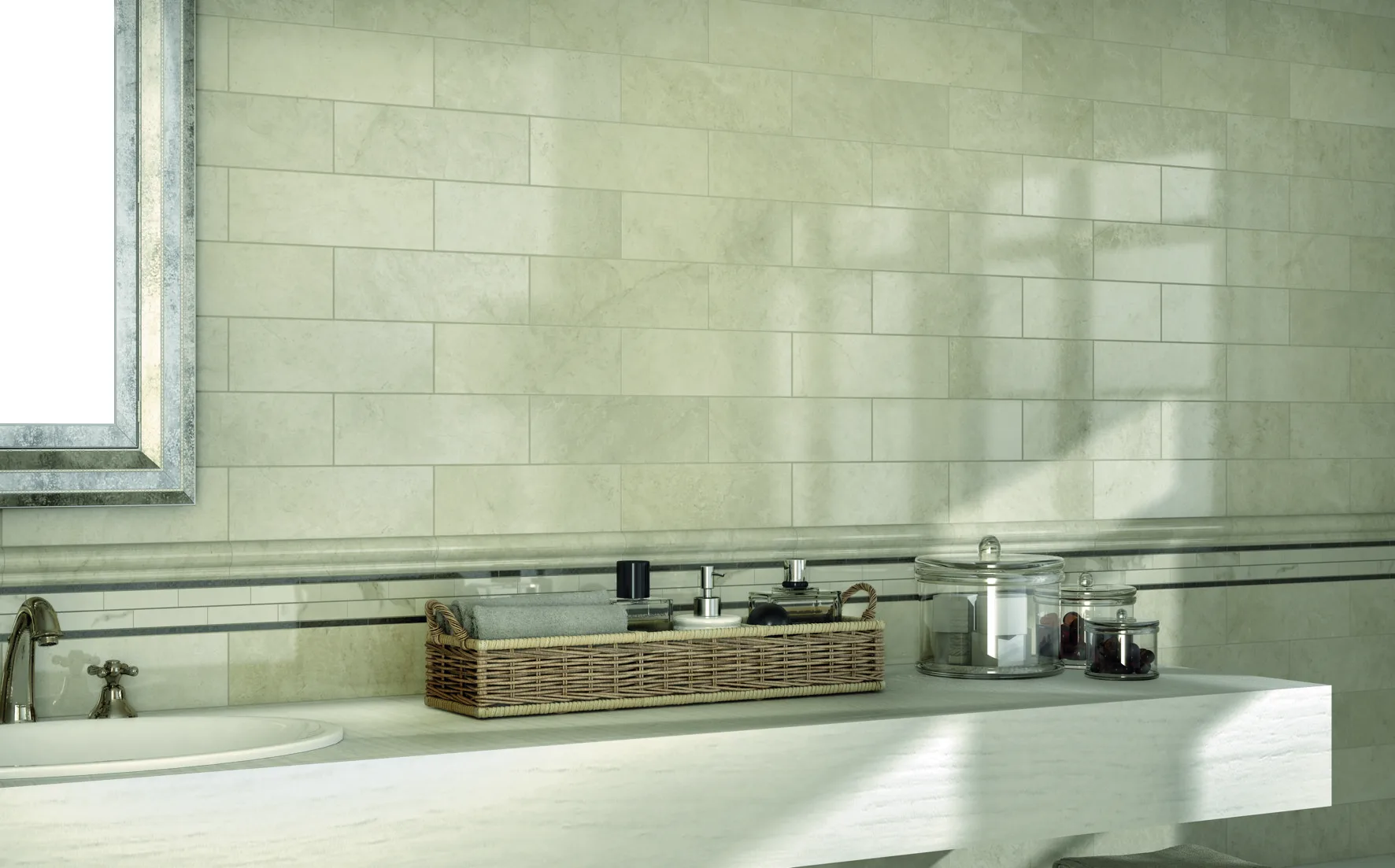 Then introduce accent details: perhaps a strip or border in the same collection, or smaller-format tiles for shower niches to give interest without clashing.