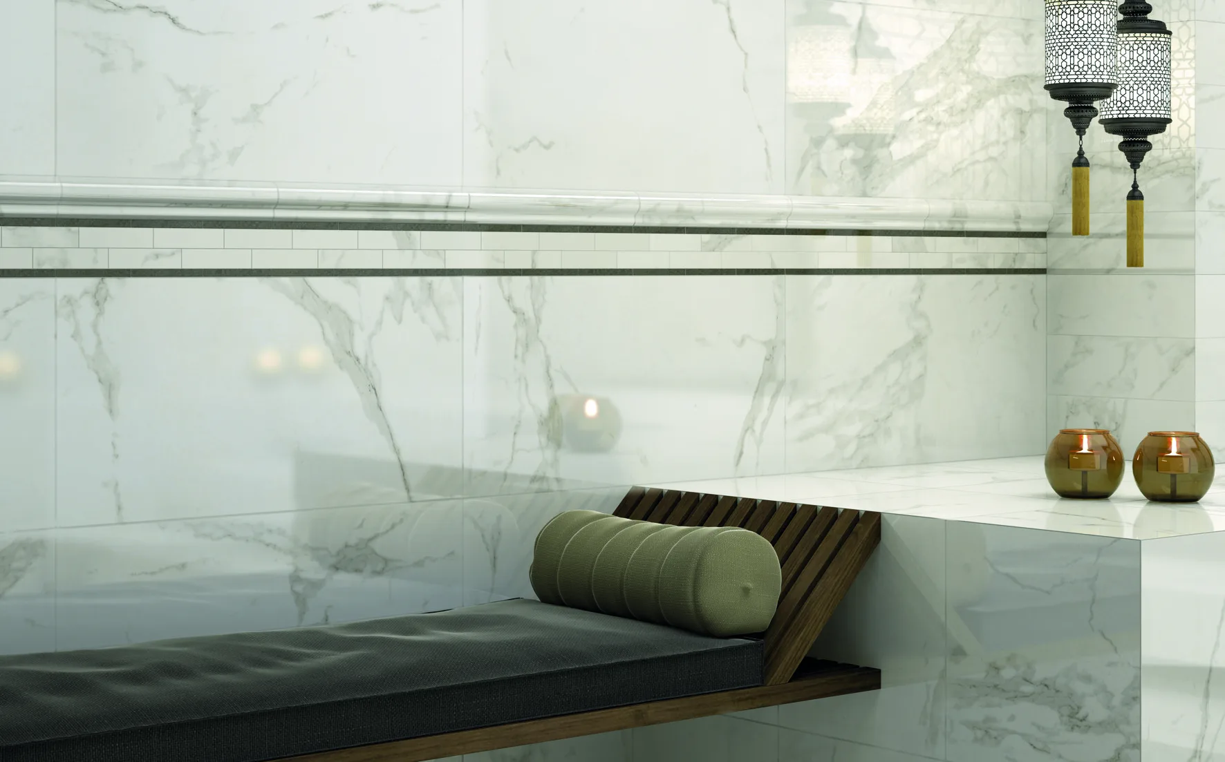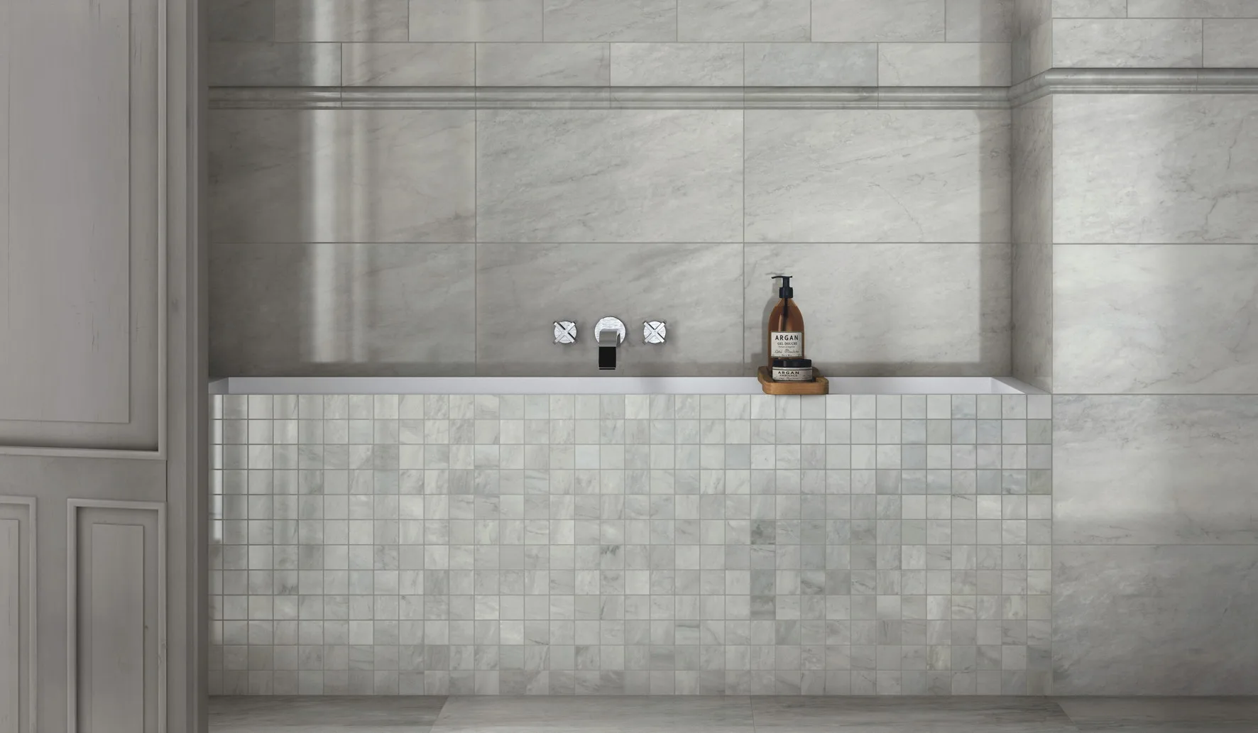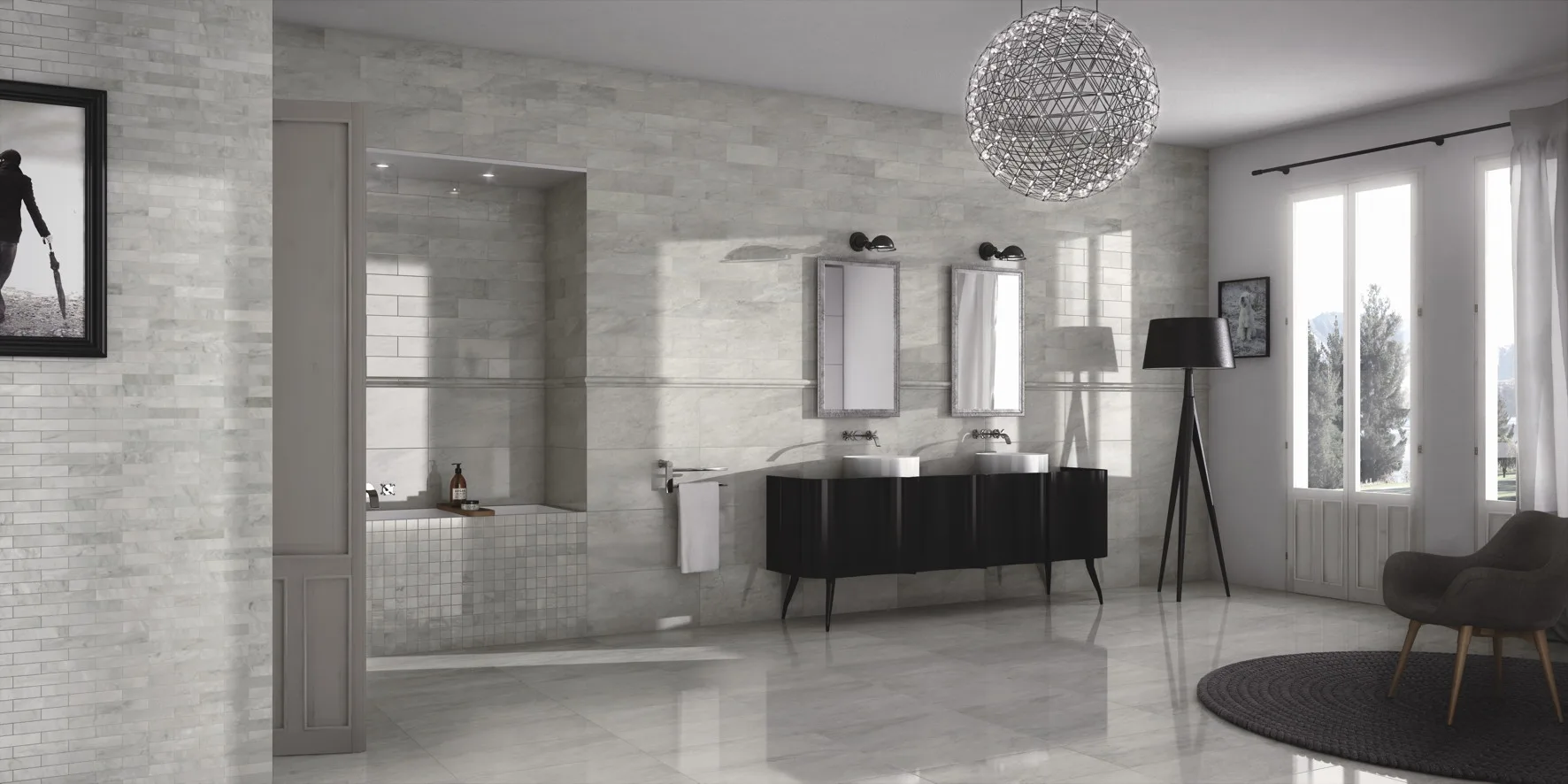 Elevate your bathroom with the timeless luxury of the Royal Marbles collection — porcelain tiles inspired by high-end marble slabs, offering elegance, refinement and modern performance.
