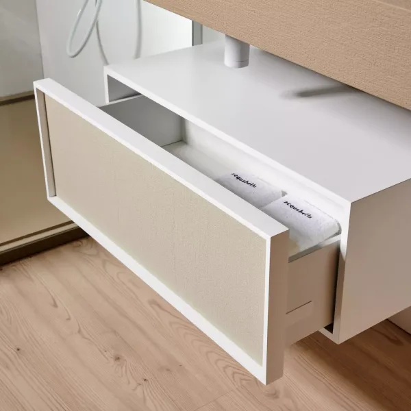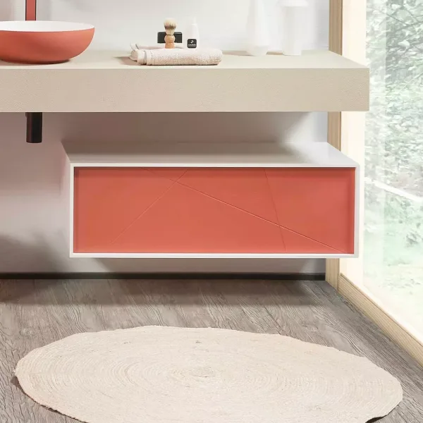 Elevate your bathroom with the Acquabella Show furniture, a bespoke vanity unit crafted from Akron® — a high-performance mineral‑reinforced resin known for its durability and luxury finish. The standout feature of the Show furniture is its fully customisable front panel: you can choose from a broad palette of colours and high-definition textures to create a truly unique piece.