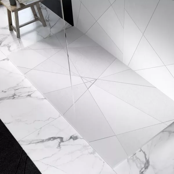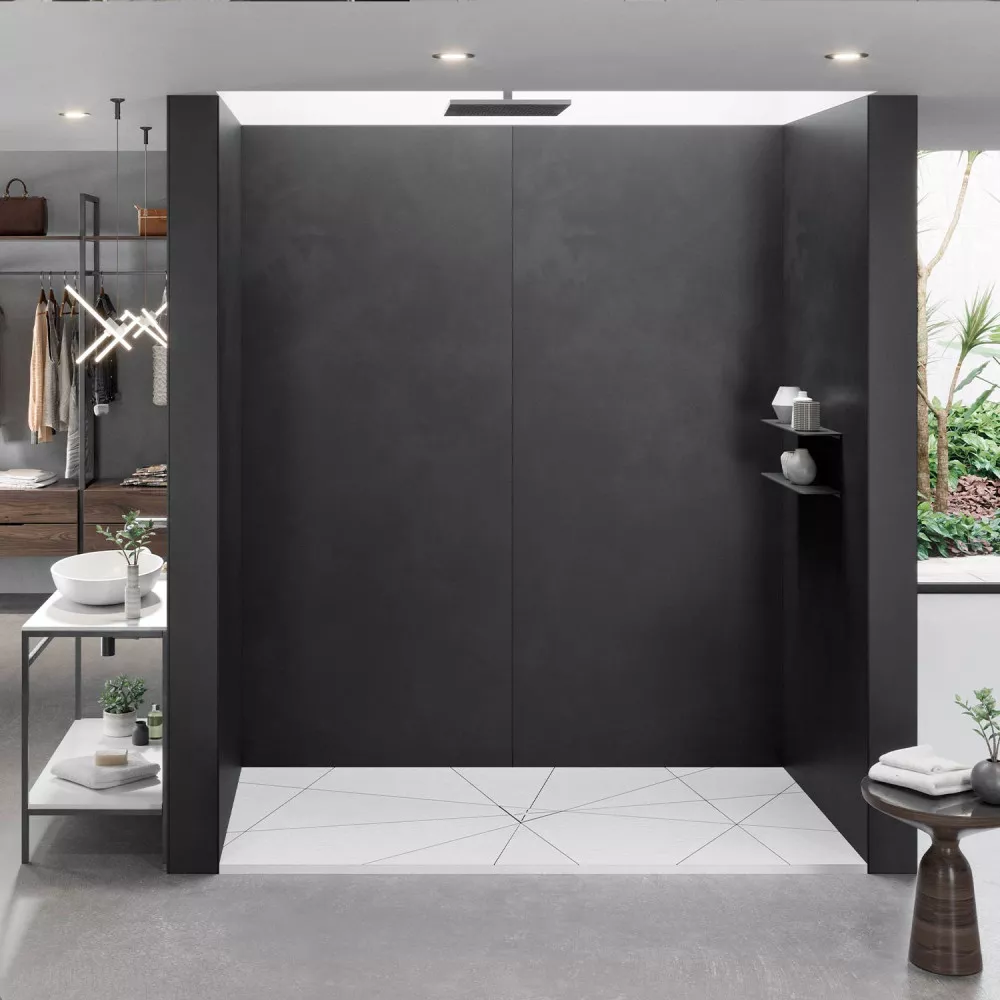 Elevate your shower space with the standout Smart Quiz tray in the premium “Acier” finish. This shower tray features a bold geometric “Puzzle” pattern composed of Beton, Zero and Ethnic textures, and integrates a hidden central drain for a sleek, minimalist look. Manufactured from the high-performance Akron® composite material, it offers exceptional durability, impact resistance and Class B/PN18 anti-slip certification.