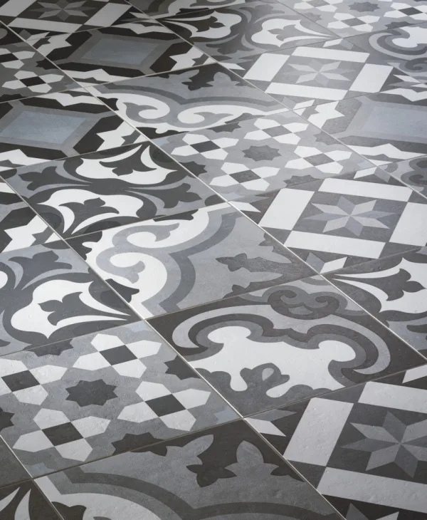 Because each tile has character, you might choose to lay them in a “random mix” of pattern styles so the surface feels non-uniform and bespoke.