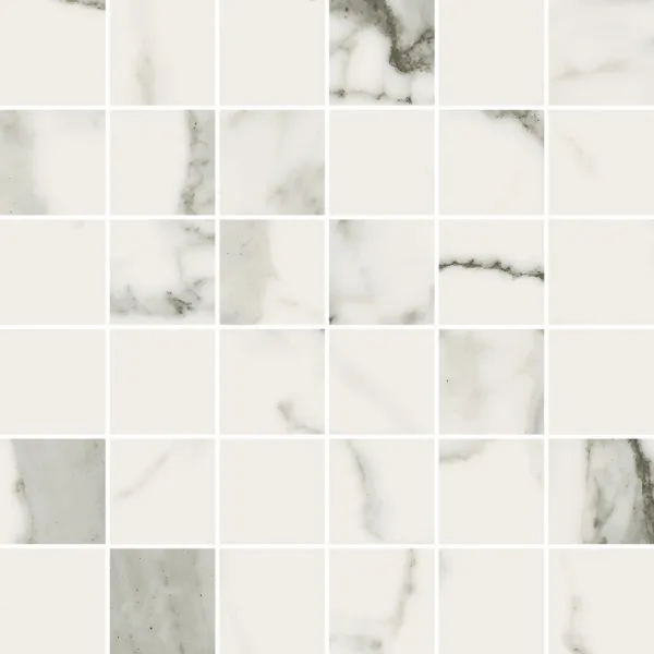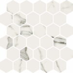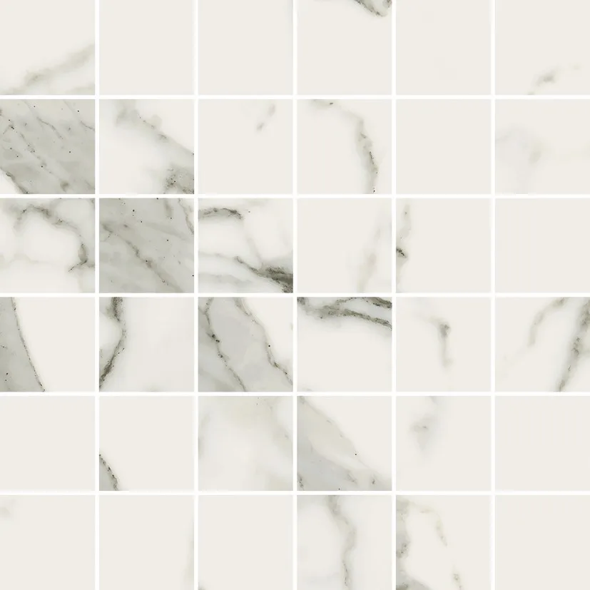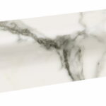 The collection captures the expressive patterns of Statuario-style marble — plenty of veining, variation in face prints and a look that commands attention in a bathroom.