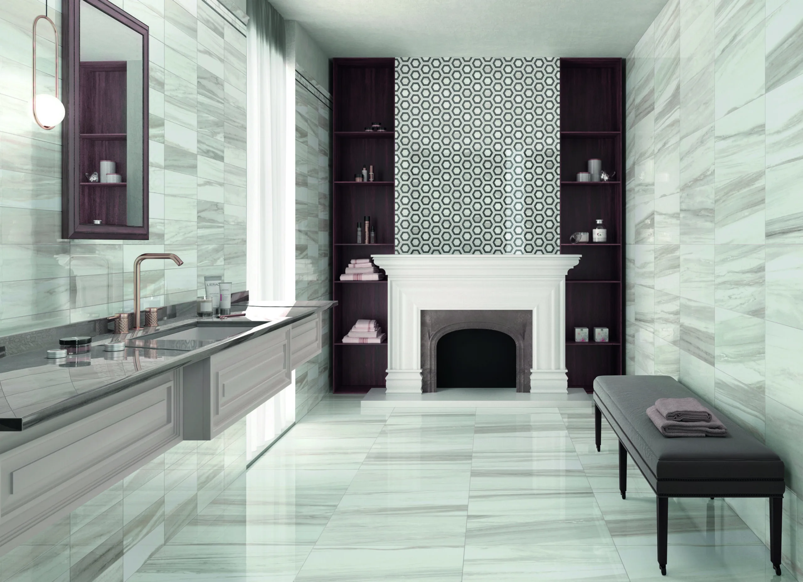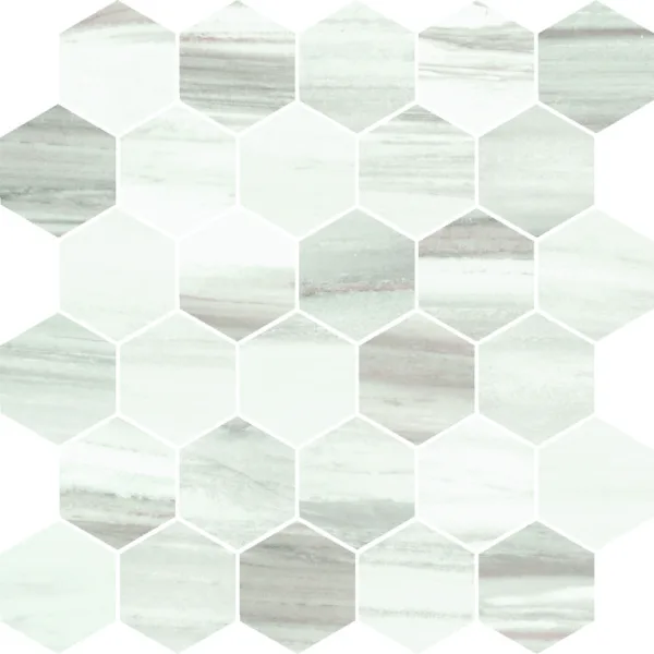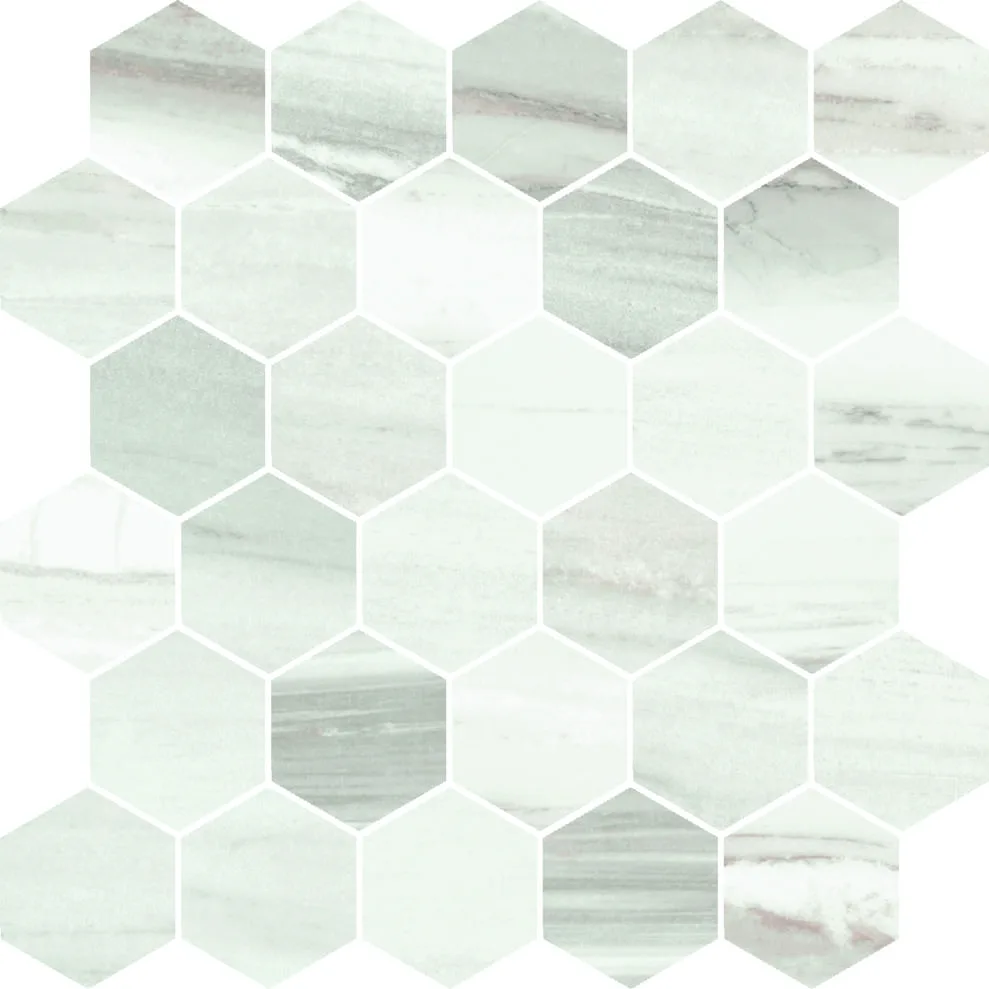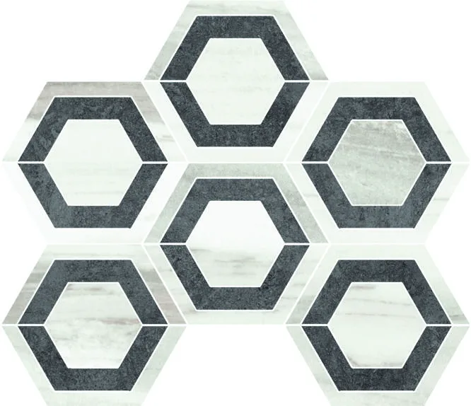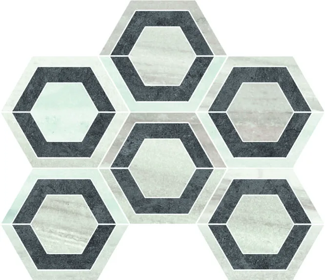 | Decors | Bordura Muretto 7×30 (3"x12"), London 5×30 (2"x12"), Mosaico 5×5 su rete 30×30 (12"x12"), Mosaico Esagono Intarsio su rete 20.7×27 (8.2"x10.5"), Mosaico Esagono su rete 27×28 (10.5"x11"), Mosaico HB su rete 28×32 (11"x13") |