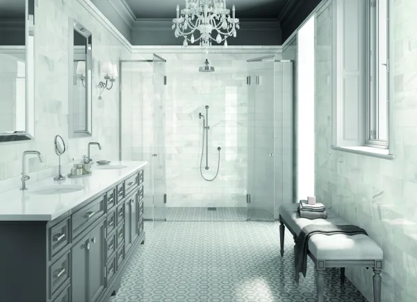 These decorative elements let you add texture, pattern or transitions in niches, around baths or behind vanities without shifting tone.