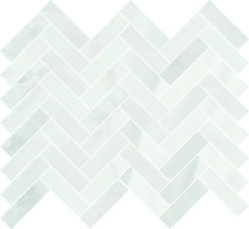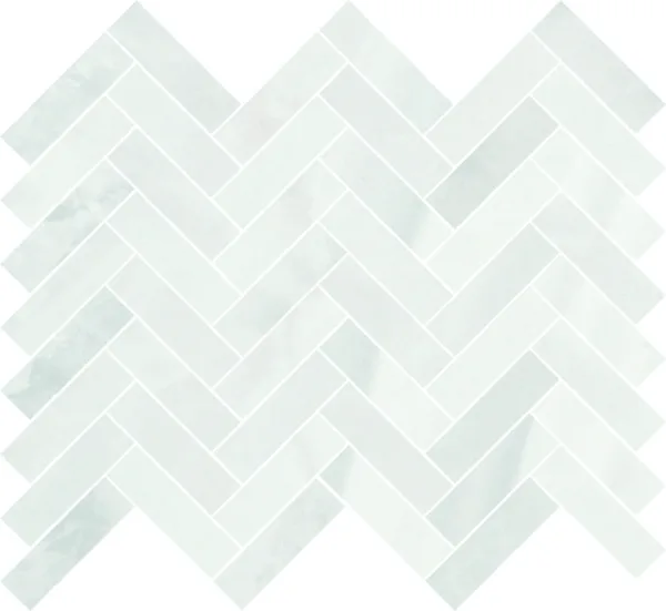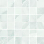 Imagine your bathroom floor in a large 120 × 120 slab of White Onyx — almost seamless, bright and elegant underfoot. Then carry the same tile up the wall behind your bath or vanity to unify space and create visual flow. Leave accent touches to the decorative mosaics or strip elements to add character without competing.